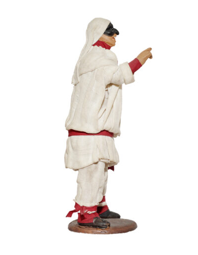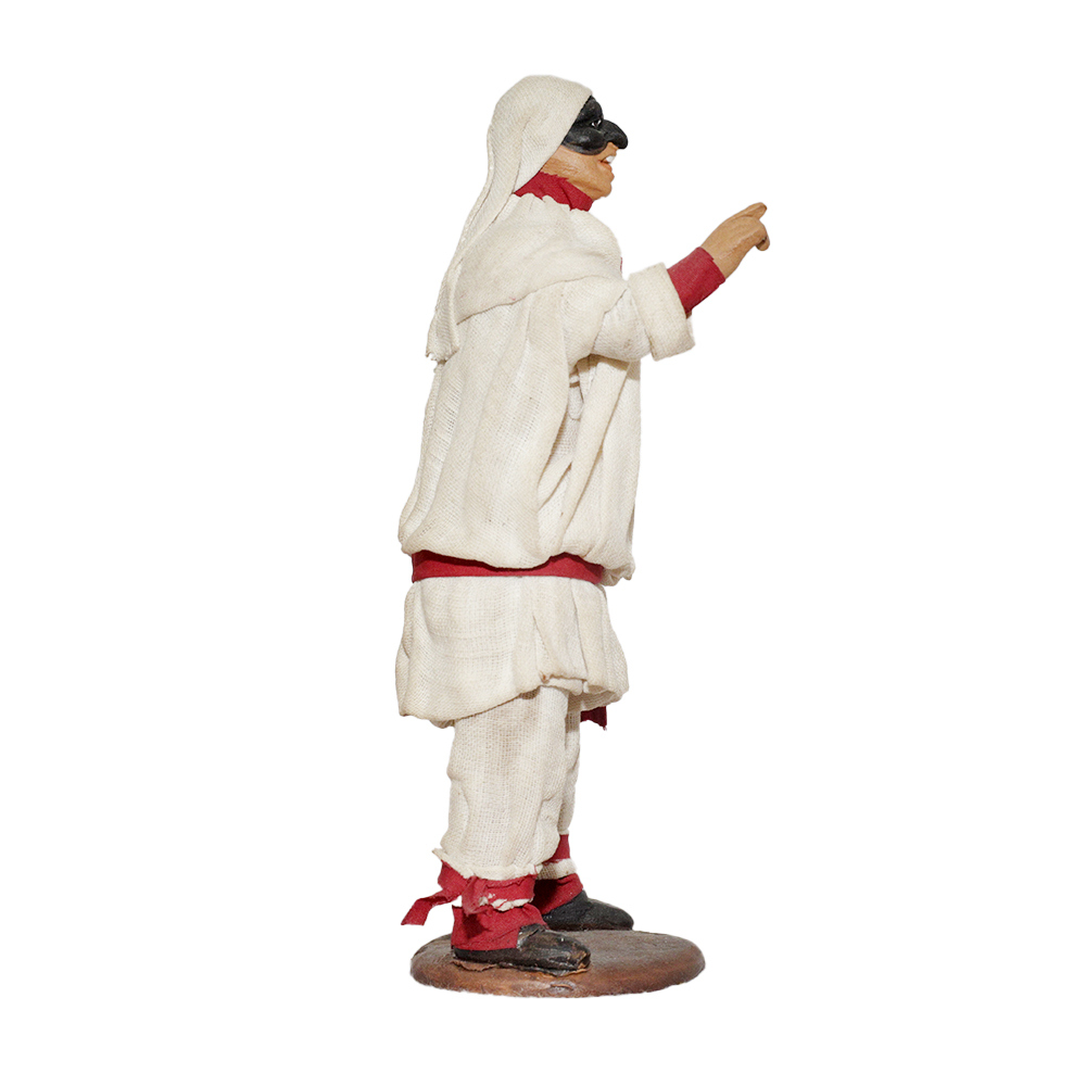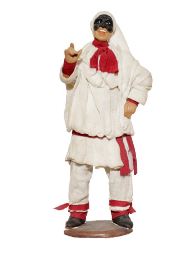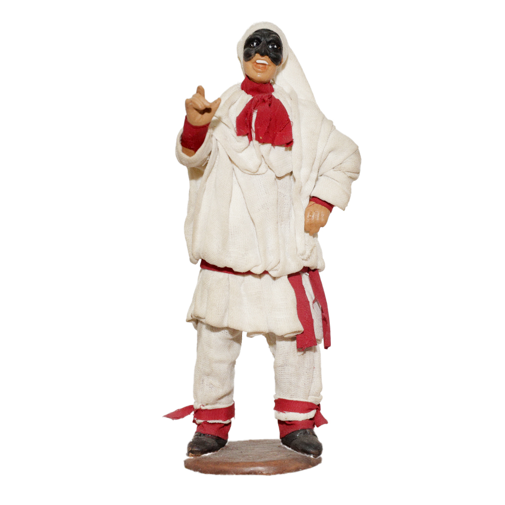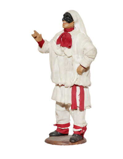 Pulcinella in terracotta vestito con stoffe, altezza cm 13