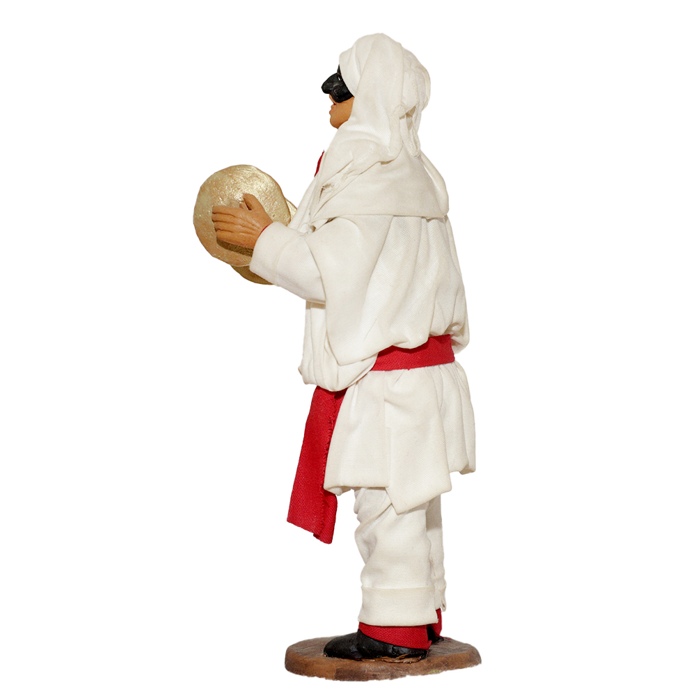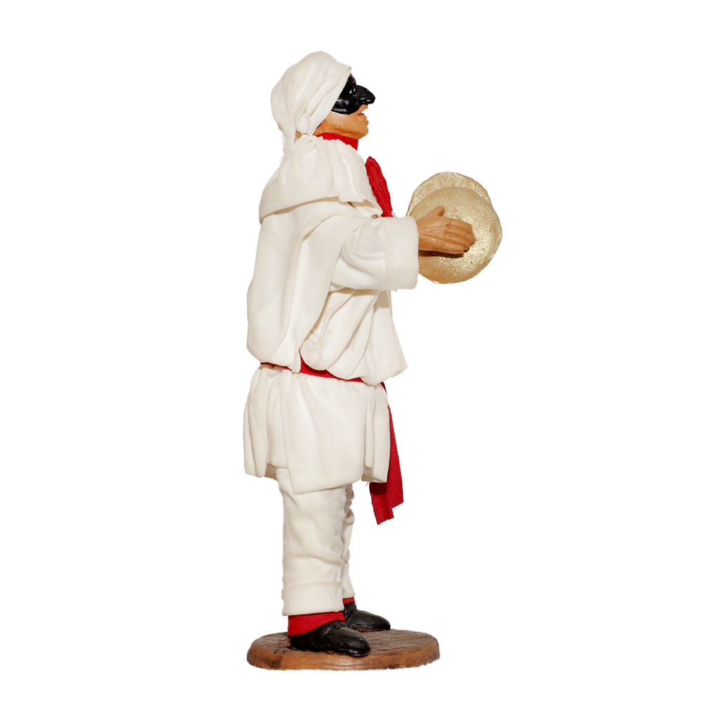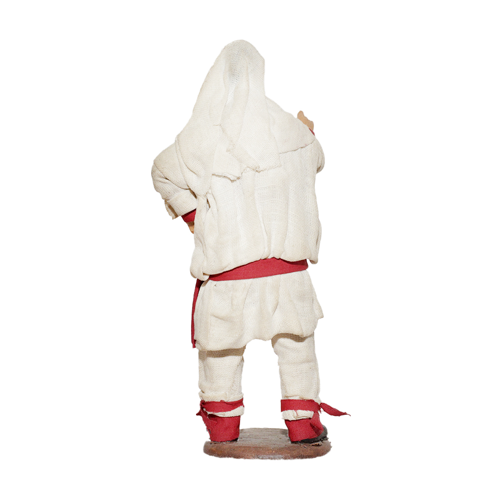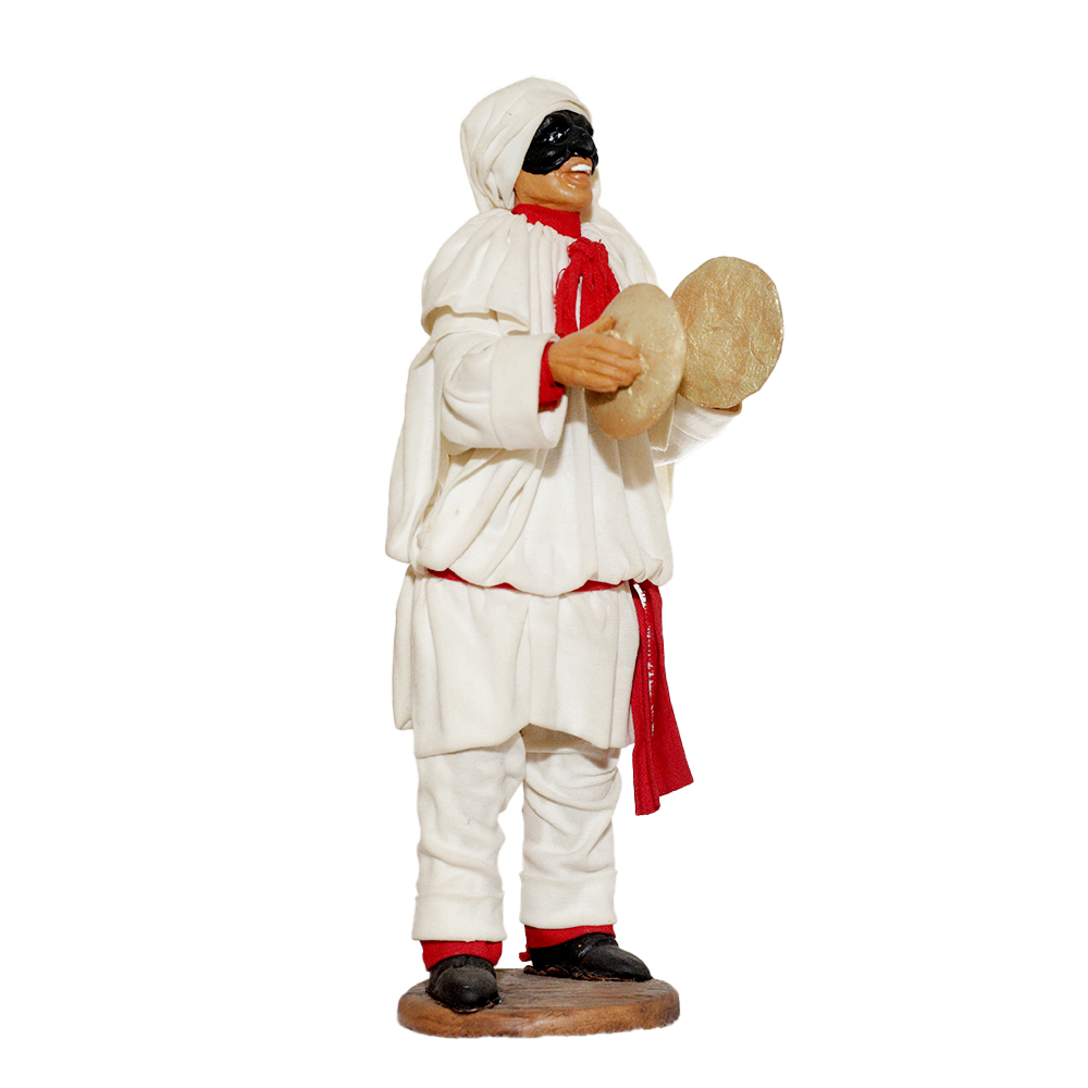 Pulcinella in terracotta vestito con stoffe, alto 13 cm