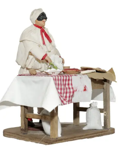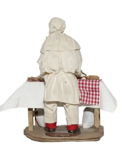 Pulcinella in terracotta vestito con stoffe, alto 15 cm