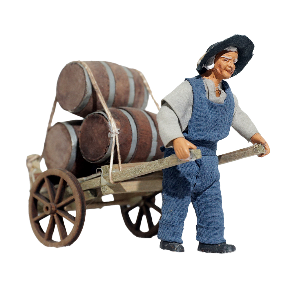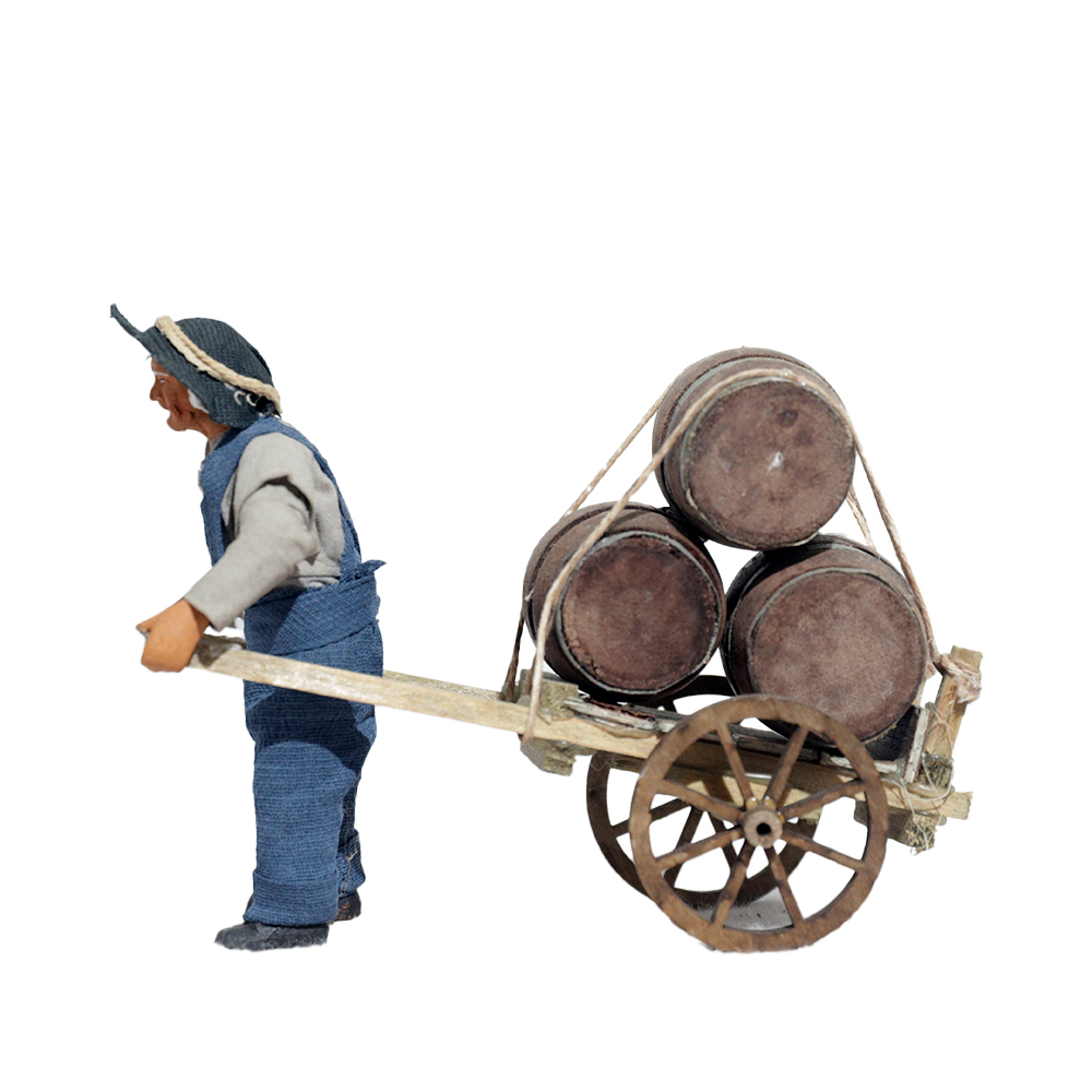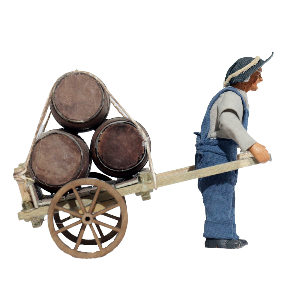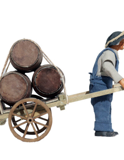 Uomo Che Porta Carretto Con Botti
