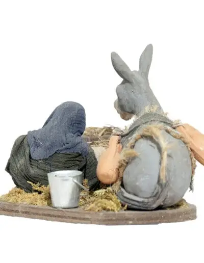 Uomo che da a Mangiare Asino Seduto per Terra