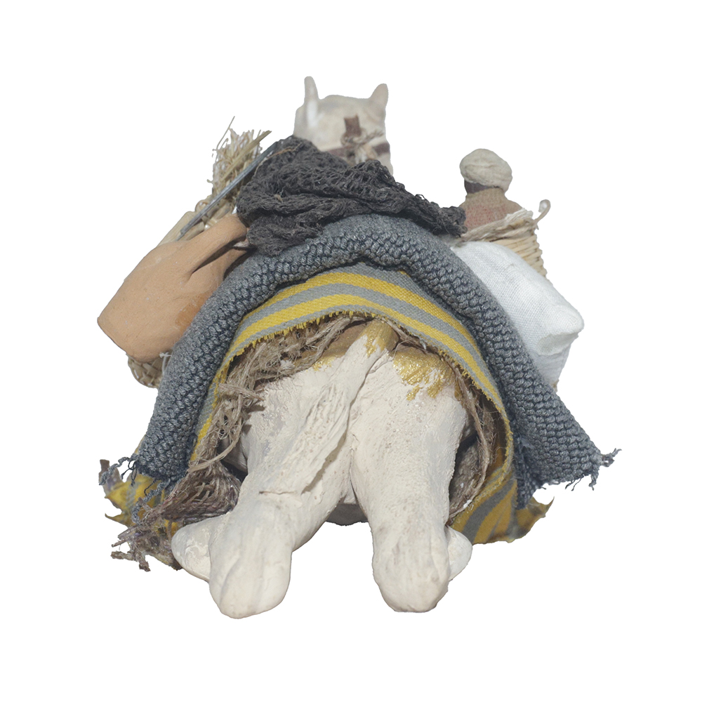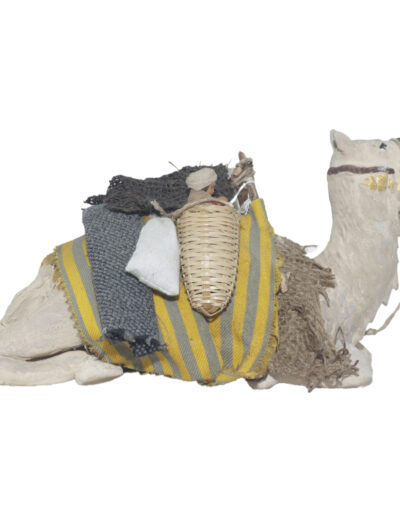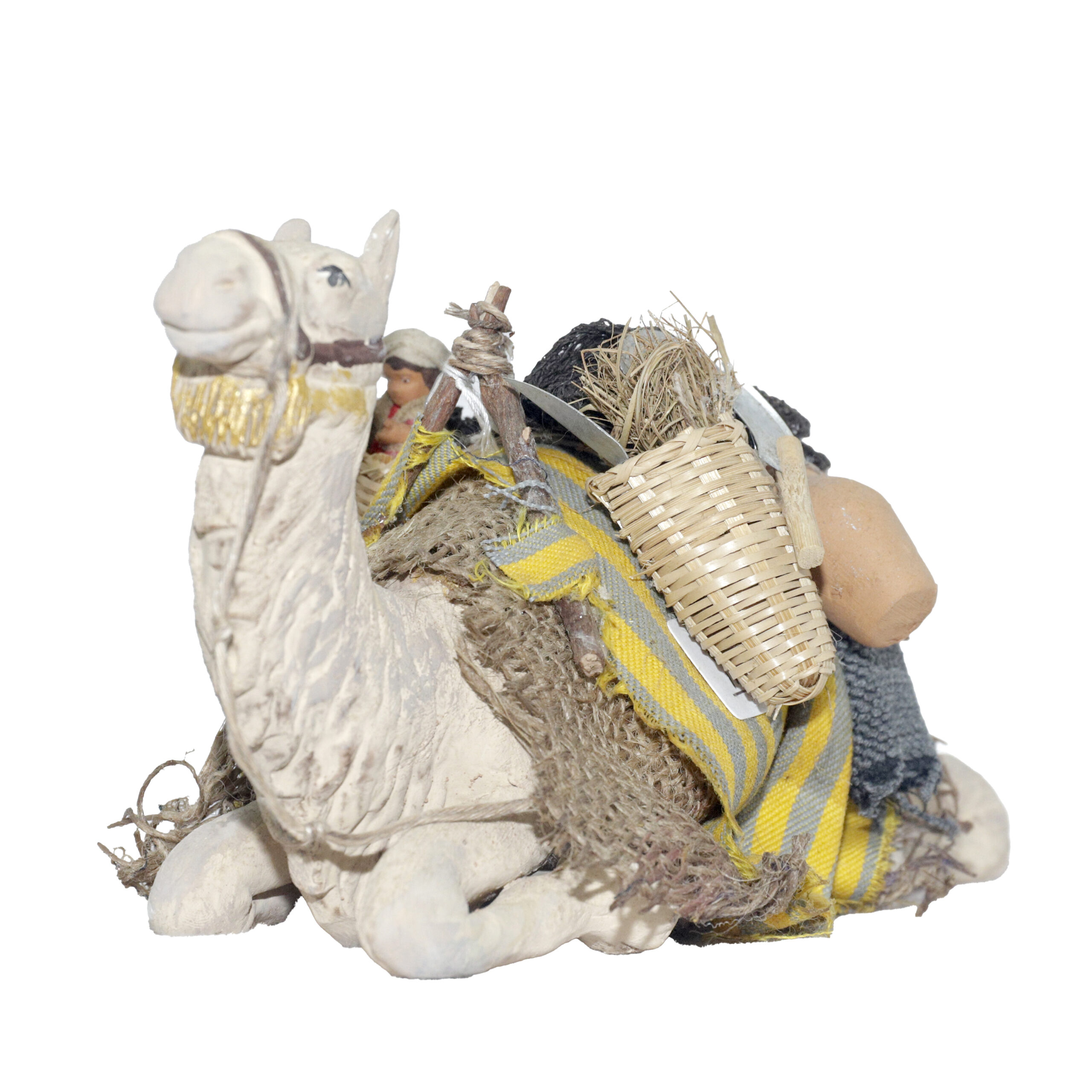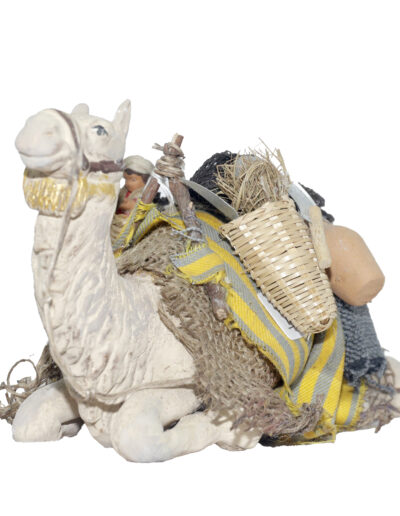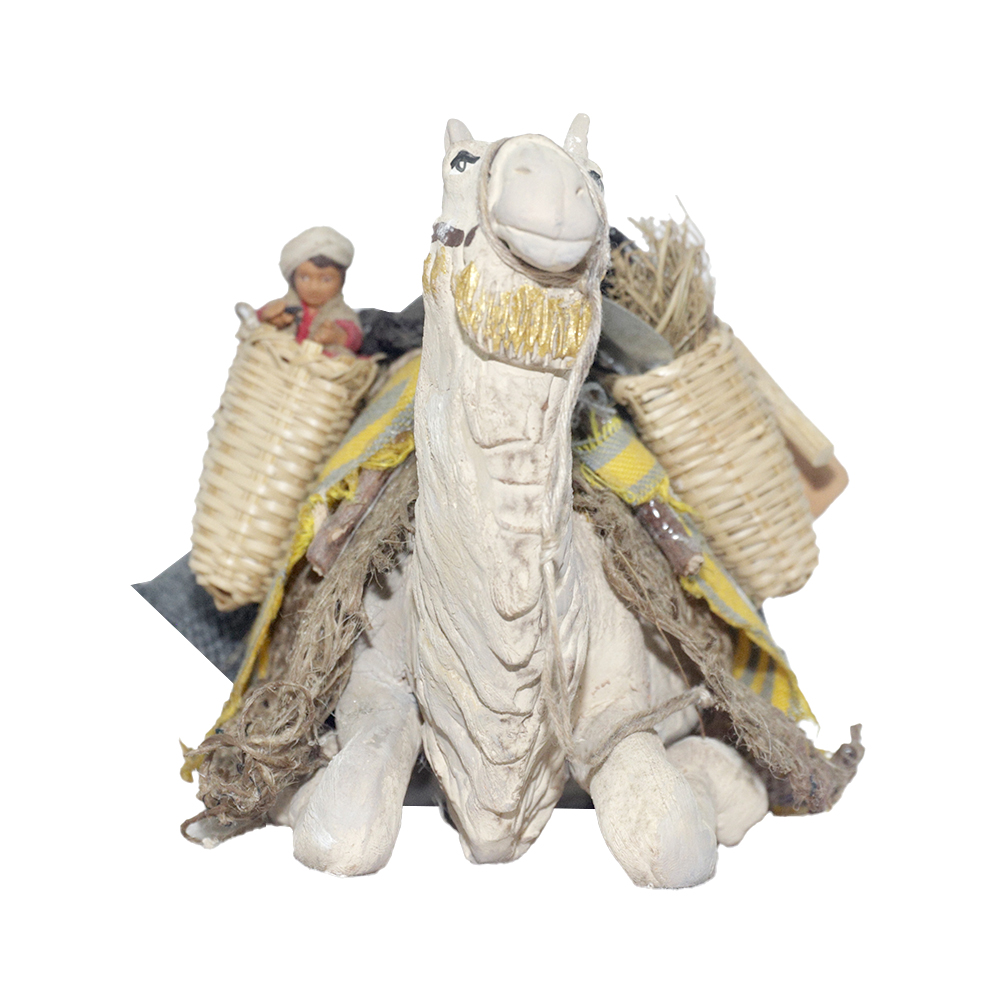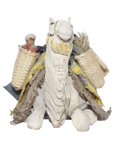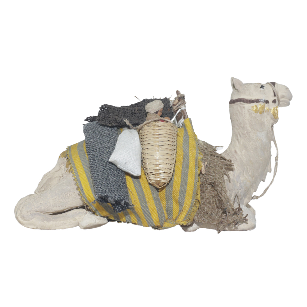 Cammello seduto con cesto con bimbo