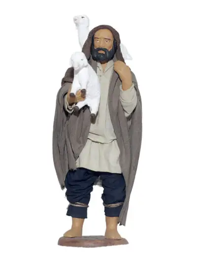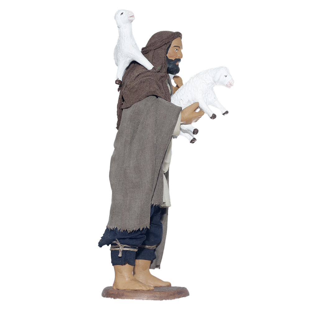 Uomo con due pecore addosso