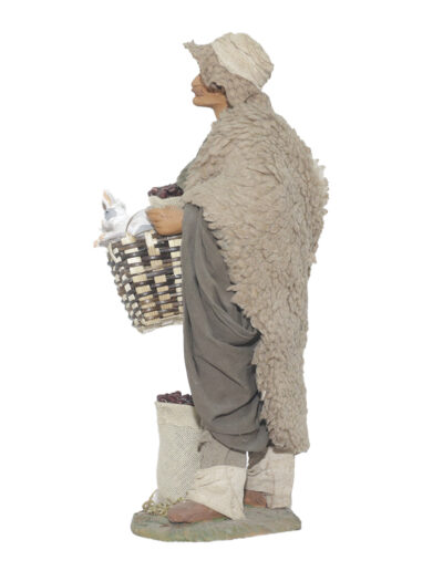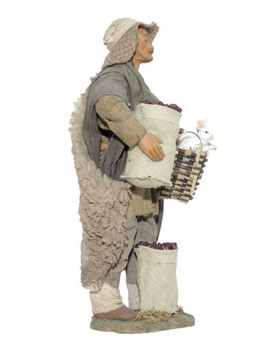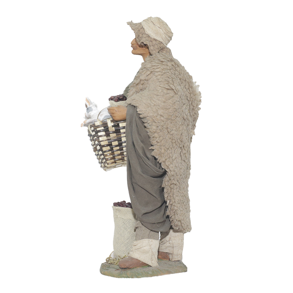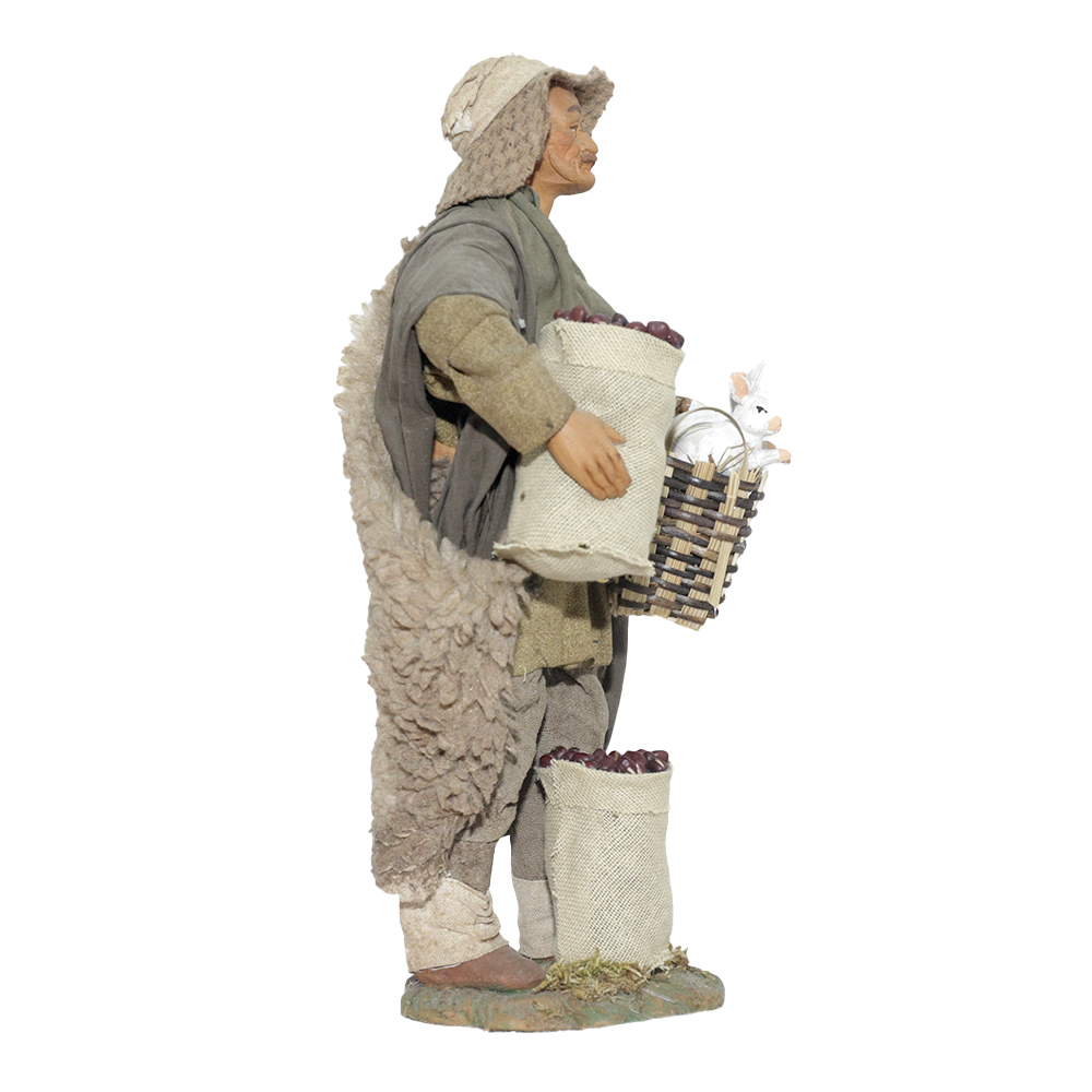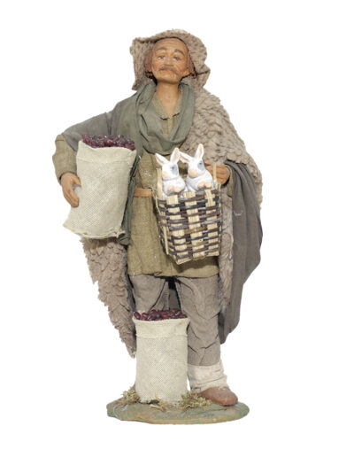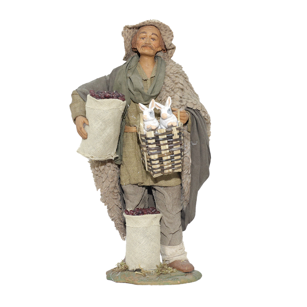 Uomo Cesto 2 Conigli In Mano E Sacco Castagne