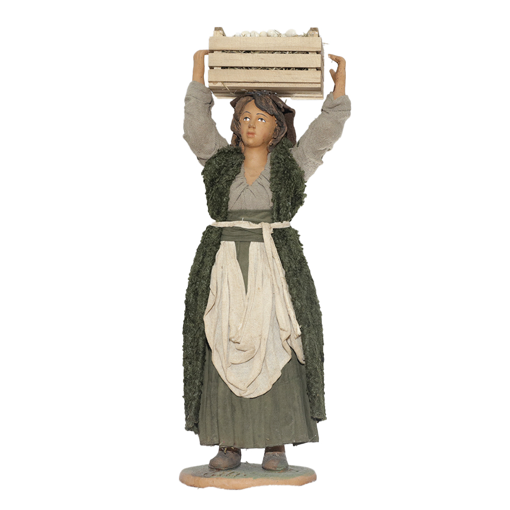 Donna Cassetta di legno con Uova in Testa